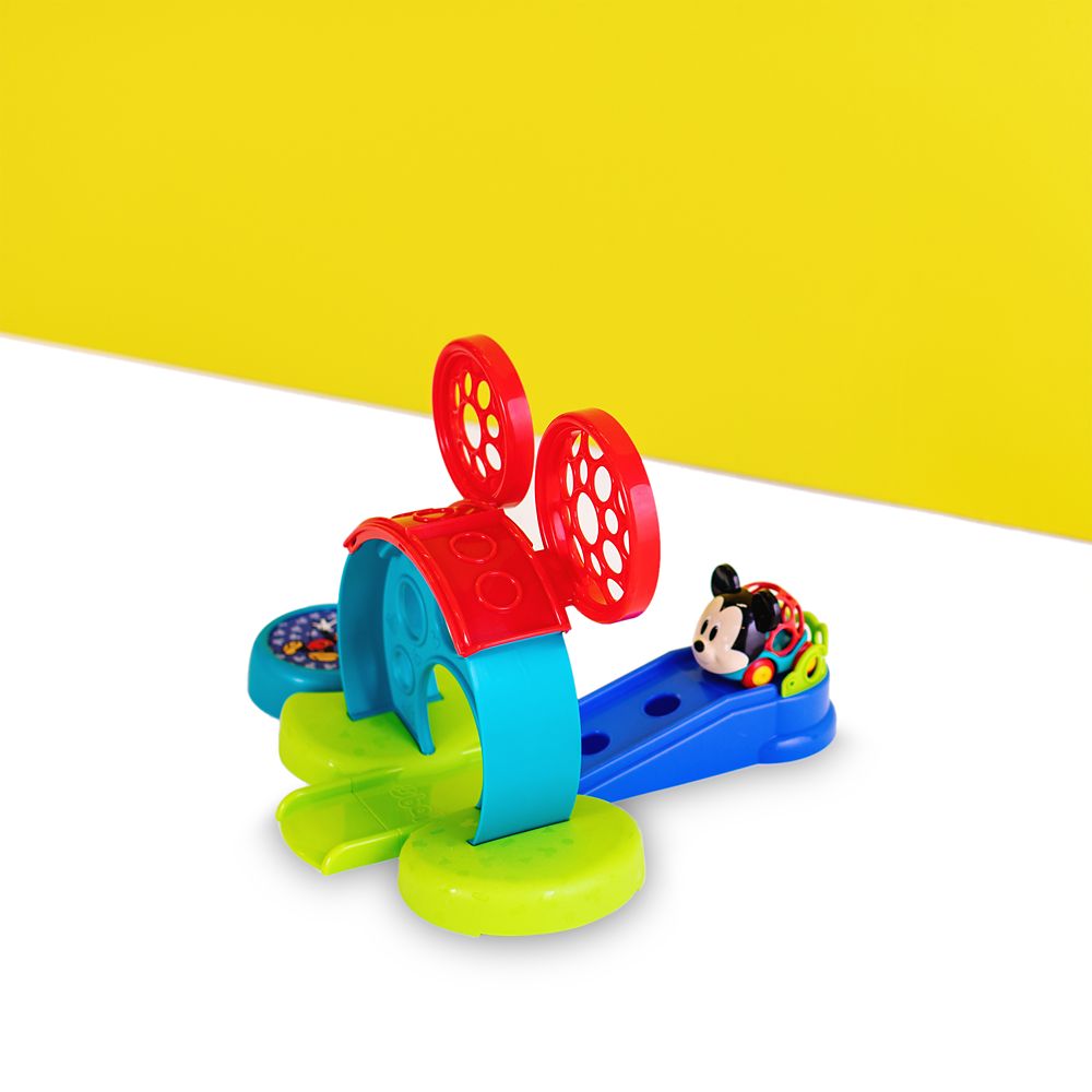 This chunky BPA-free silicone set of keys soothes babys sore teething gums. With a vroom and a zoom the cars will race down the speed ramp through Mickeys dome.